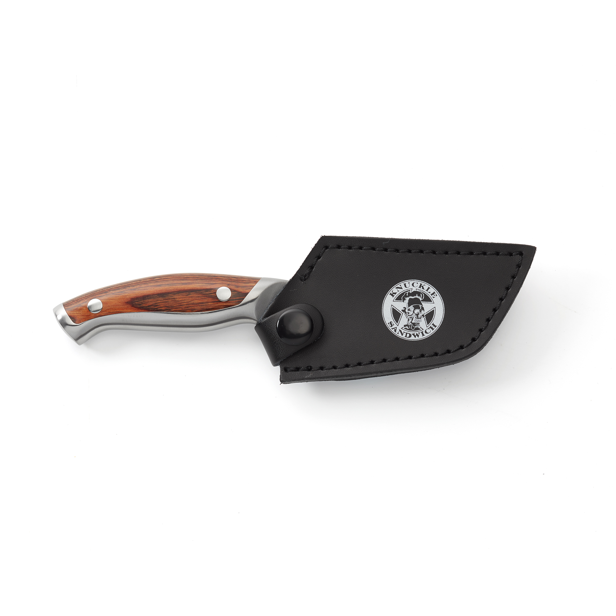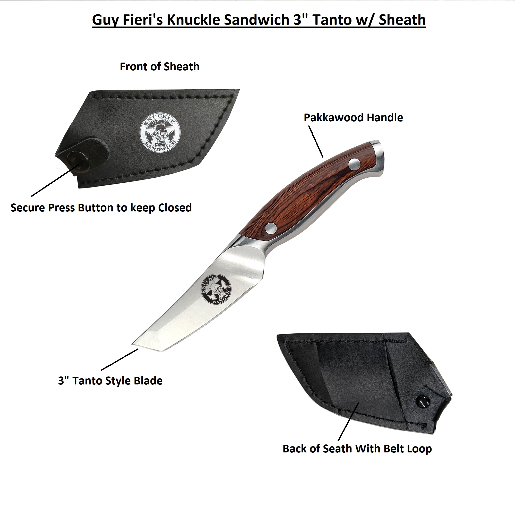 - Includes: 3-Slot Natural Wood Knife Block, 6″ Offset Serrated Utility Knife and 3″ Tanto Paring Knife w/ Leather Sheath